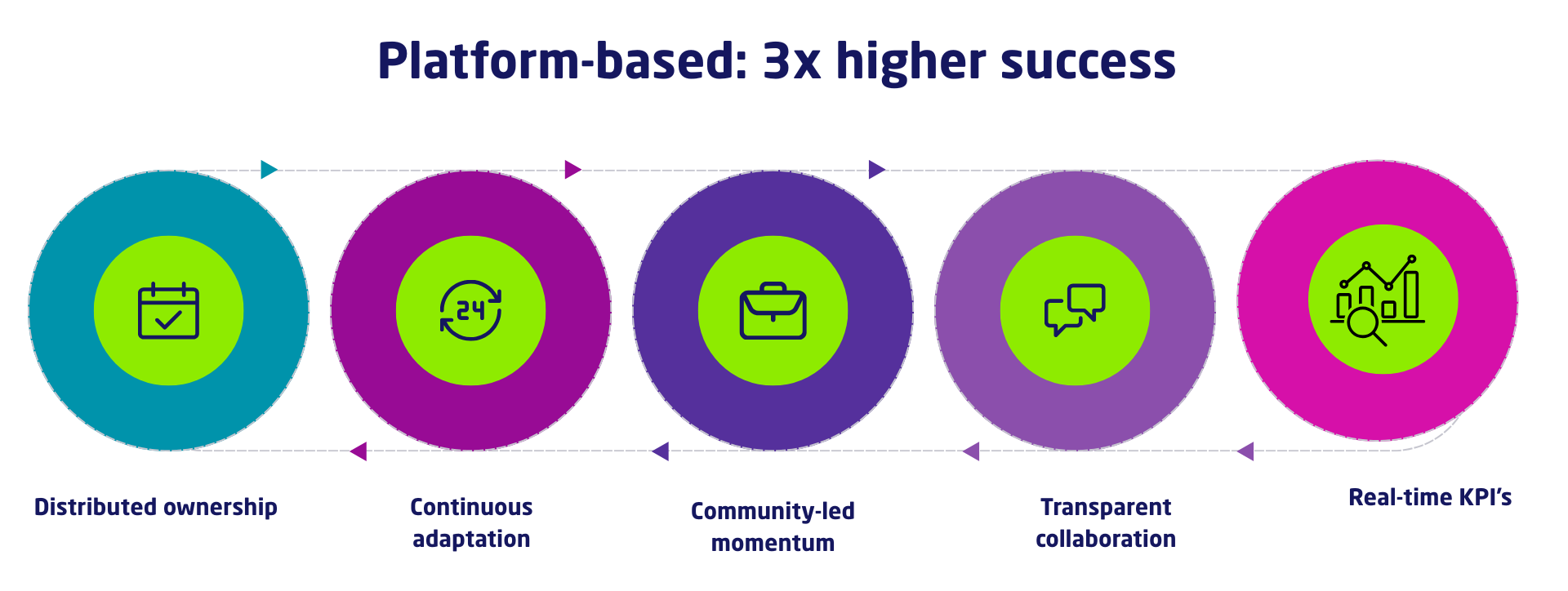 Traditional transformation models break down under centralized control, silos, delays, and static plans. Platform-based transformation distributes ownership, builds transparency, and adapts continuously making success three times more likely. Strategy alone is not enough. Execution must evolve too.